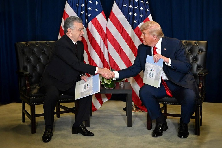 Shavkat Mirziyoyev and Donald Trump. Photo courtesy of the press service of the president of Uzbekistan.